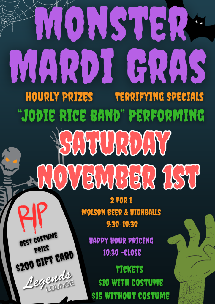 Get ready for a night of thrills and chills at Legends' Monster Mardi Gras!