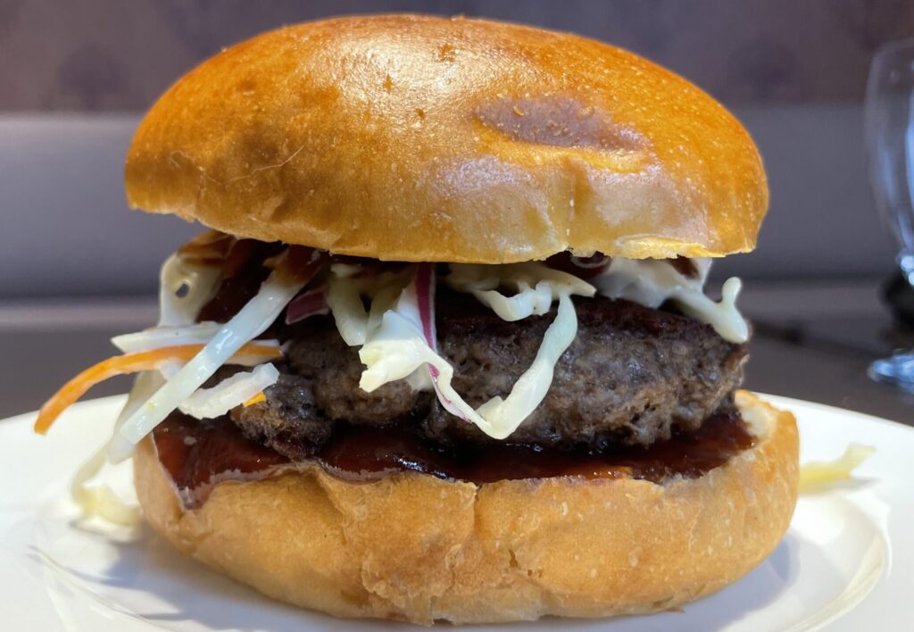 A full-flavored 8 oz pepper berry–seasoned beef patty meets the perfect balance of sweet and tangy with a drizzle of 40 Creek BBQ sauce. Piled high with our creamy house-made coleslaw and served on a warm, grilled potato bun, it’s a satisfying clash of smoky, crunchy, and cool - and trust us, this is one fight you’ll be glad to lose.