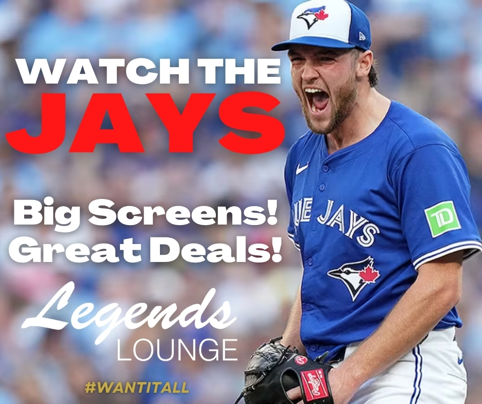 💥 When the Jays hit a home run, score 20% off one munchie menu item. In addition, everyone in attendance will get a ballot for a $200 Legends Gift Card! Gift cards will be drawn at the end of every Jays playoff series.